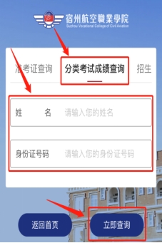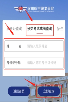 2.进入后点击“分类考试成绩查询”,根据提示填写学生姓名及身份证号码,填写正确后,点击下方“立即查询”🧑🏽‍🦱;