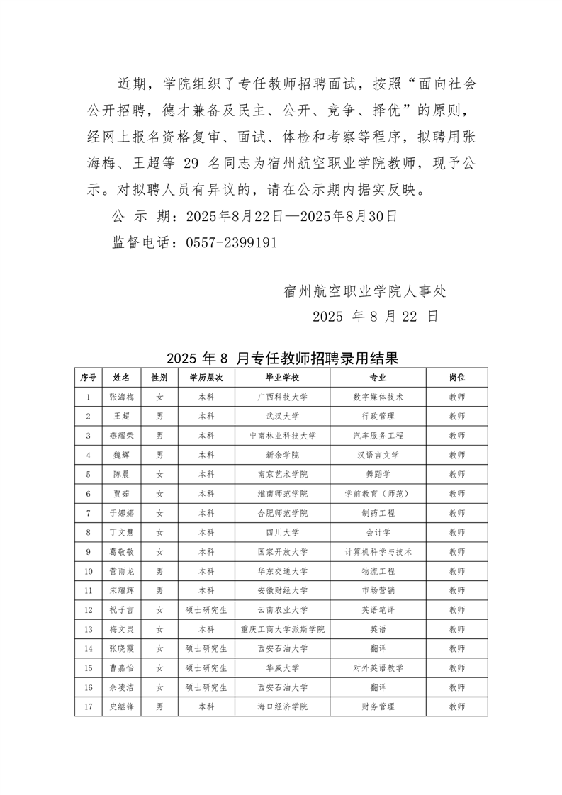 彩神Vll学院2025年7月专任教师、辅导员招聘录用公示