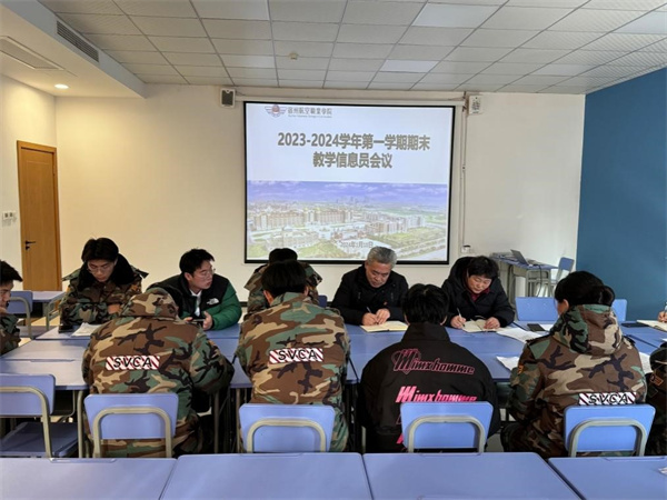 2024年1月10日下午宿航院召开2023-2024学年第一学期期末学生教学信息员会议,学院纪委书记、督导委员会副主任、科研处长高贵珍,学院纪委委员🙋、督导委员、教务处长郭焕银,学生教学信息中心负责人朱珠参加会议。