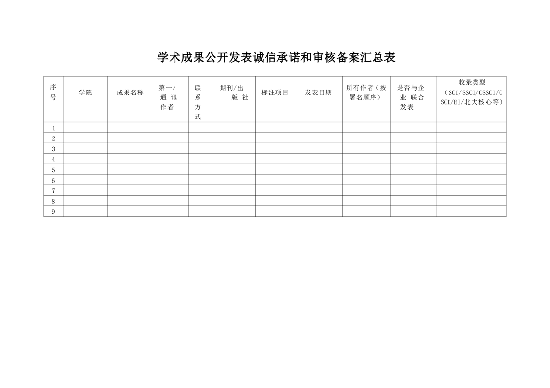 学术成果公开发表诚信承诺和审核备案汇总表