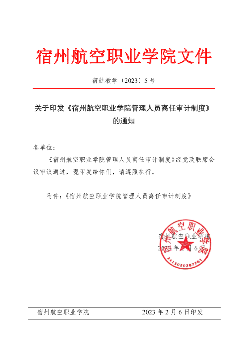 关于印发《彩神Vll学院管理人员离任审计制度》的通知