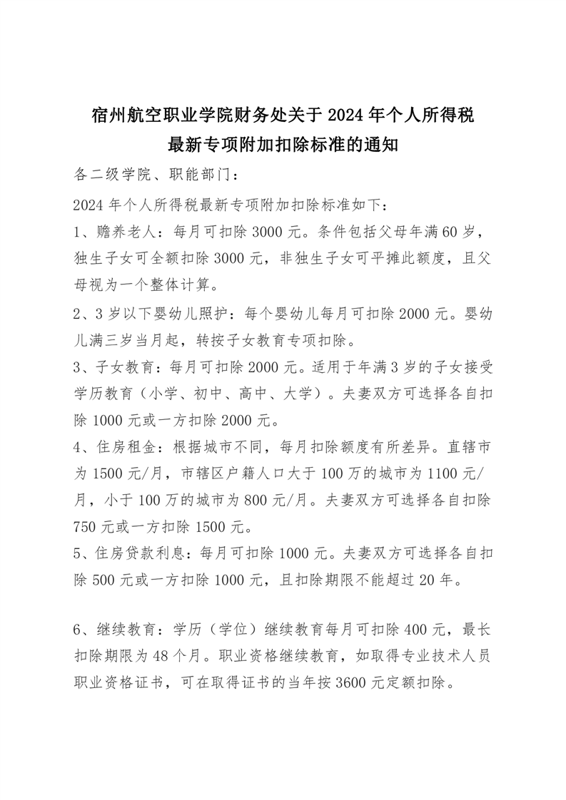 彩神Vll学院财务处关于2024年个人所得税最新专项附加扣除标准的通知
