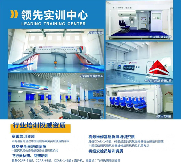 学院拥有领先的航空专业实训设施设备,建立模拟飞行训练中心、乘务实训中心、安检实训中心🦞、机务维修实训中心🍊、民航运输实训中心等航空专业实训中心,包含波音737模拟客舱🏰、空客320模拟客舱、陆地撤离训练舱等先进实训设备,可满足各类民航岗位的实训需求👵🏽,具备学生培训♙、区域航空院校集中实训、民航单位入职员工初训🛥、在职员工复训、社会体验、旅游观光6大功能。
