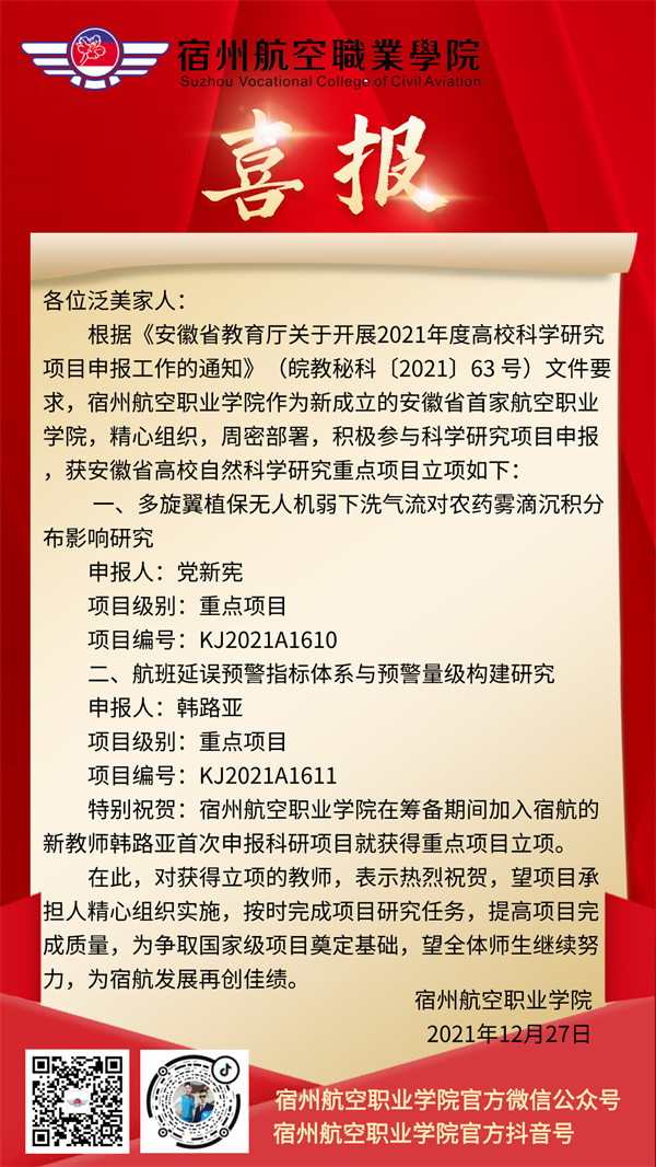 除此🤵🏼‍♀️💂‍♀️,2021年宿航院分别获批“安徽省第二批国际交流合作基地”及两项科研项目获“安徽省高校自然科学研究重点项目立项”🐩。学院在国际交流和开发合作方面有引领、示范👨‍🔧、带动作用。