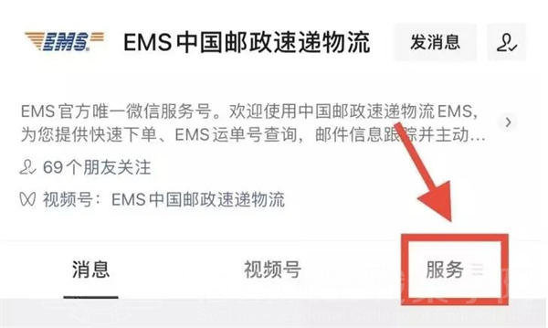 1.微信搜索“EMS中国邮政速递物流”🛕,进入公众号后点击标题栏“服务”;