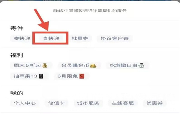 2.点击标题栏“服务”后,点击“查快递”,进入物流状态查询界面⏬,