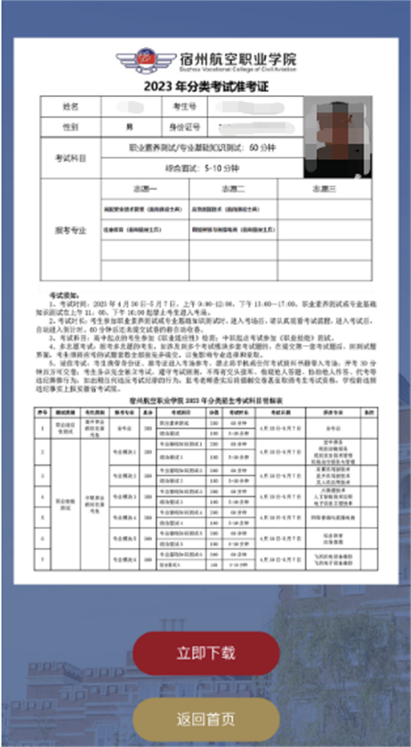 3.登录后,请考生仔细核对个人信息,核对无误后♢,点击下方“立即下载”👨🏻‍🚒,下载完成后,即可保存图片🫷🏼,打印准考证。