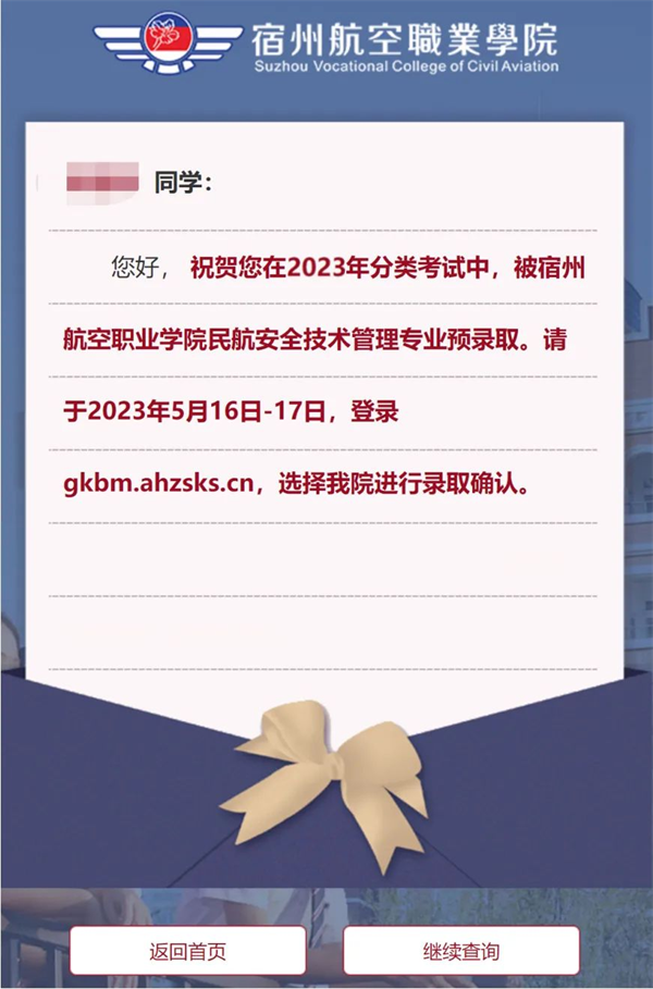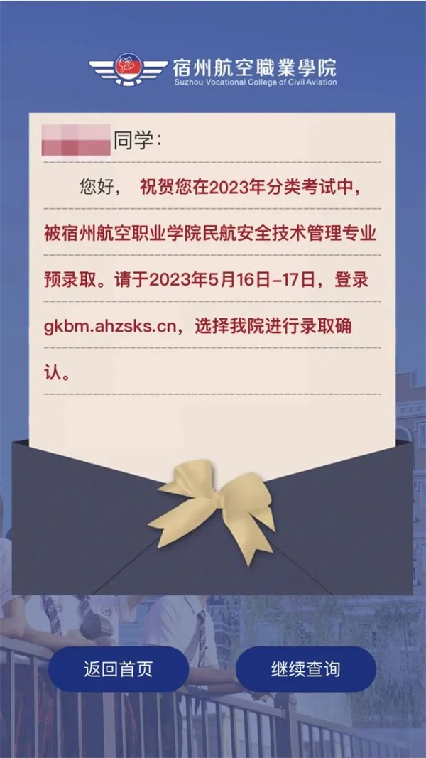 3.点击“立即查询”后,即可查看预录取结果,页面如下🧑🏼💻: