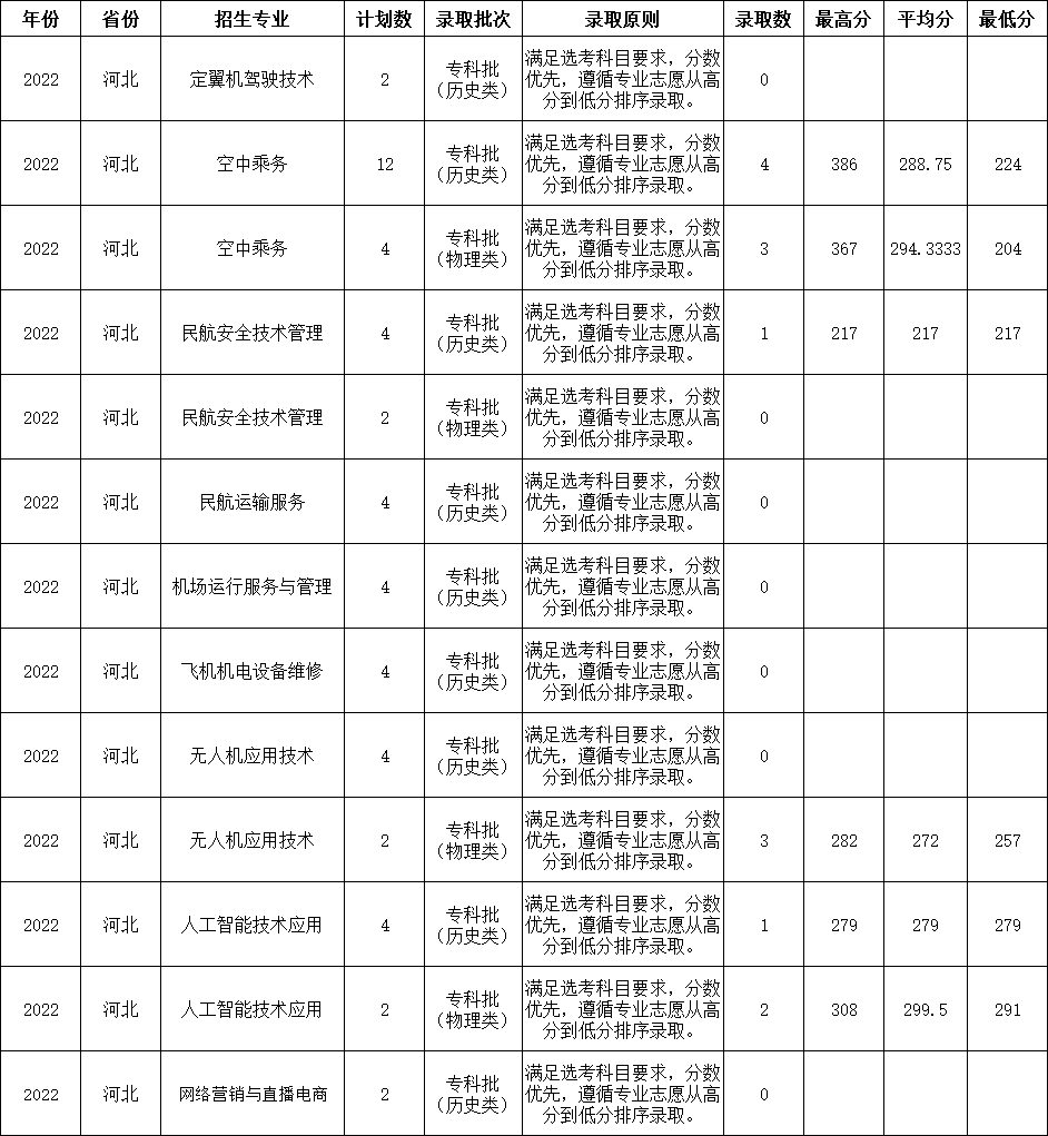 2022.08.12我校在河北省普通类专科批平行志愿招生录取工作结束,计划50,投档14,录取14, 考生可登录http://www.szhkxy.com/Admission/查询录取结果。