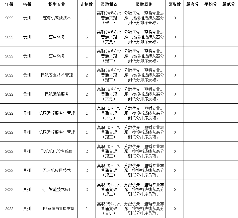 2022.08.13我校在贵州省普通类专科批平行志愿招生录取工作结束,计划20👩🍼,投档0,录取0🫏, 考生可登录http://www.szhkxy.com/Admission/查询录取结果。