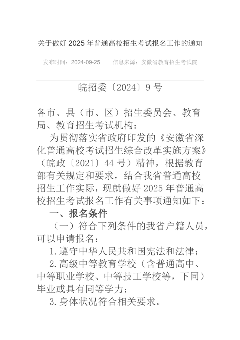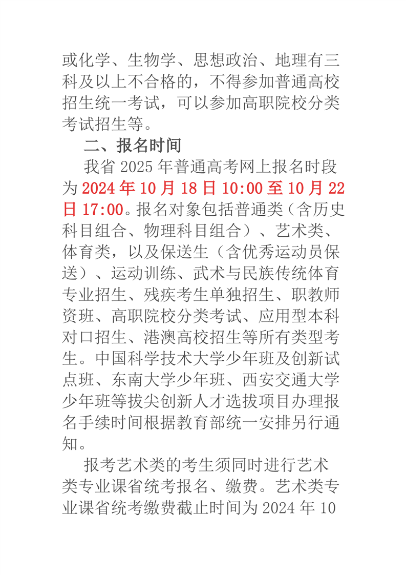 关于做好2025年普通高校招生考试报名工作的通知