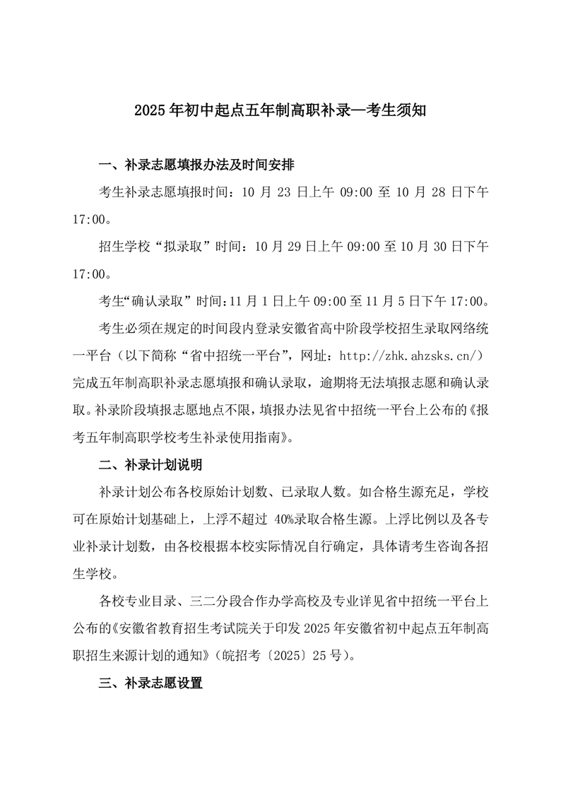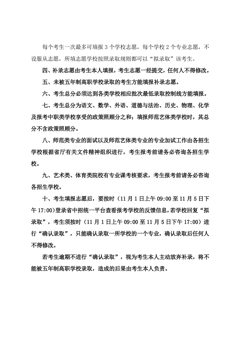 2025年初中起点五年制高职补录--考生须知