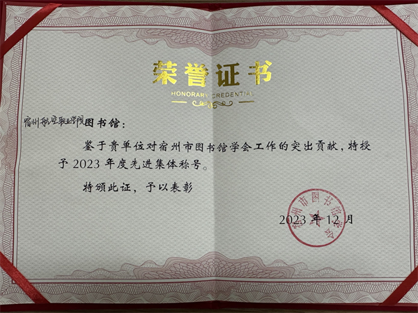 会上,宿州职业技术学院党委委员李斌主任介绍了宿州职业技术学院图书馆馆藏现状与发展前景🥨🧹,安徽省图书馆朱开忠研究馆员分享了安徽省图书馆馆藏资源建设与读者服务情况。年会总结了过去一年的工作,介绍了明年的工作计划。年会还对过去一年工作突出的图书馆进行了表彰。作为宿州新建图书馆,年会决定授予我校图书馆先进集体以示鼓励🚫。