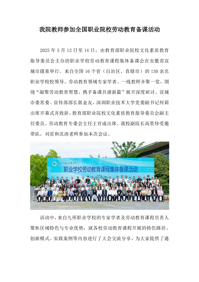 我院教师参加全国职业院校劳动教育备课活动