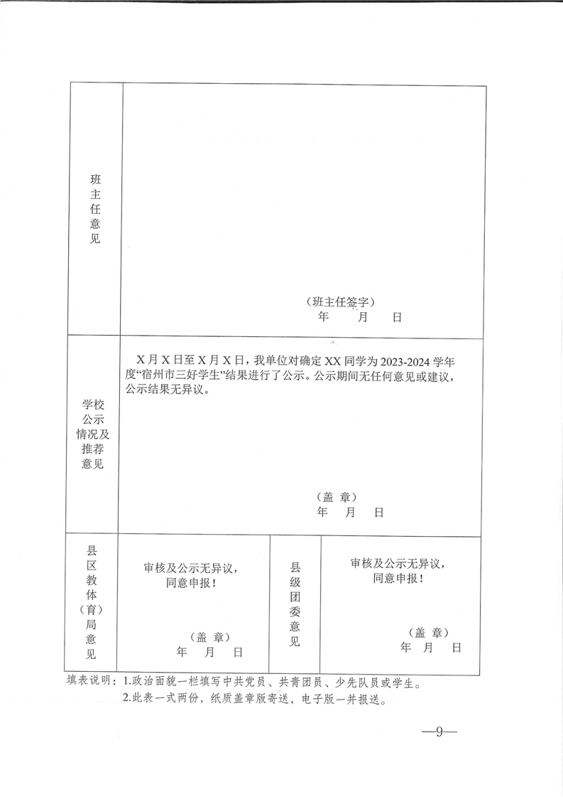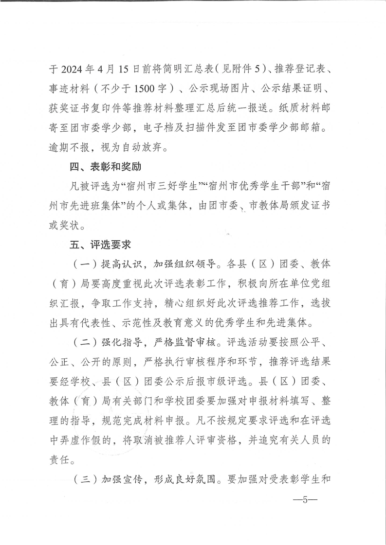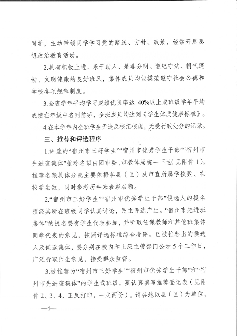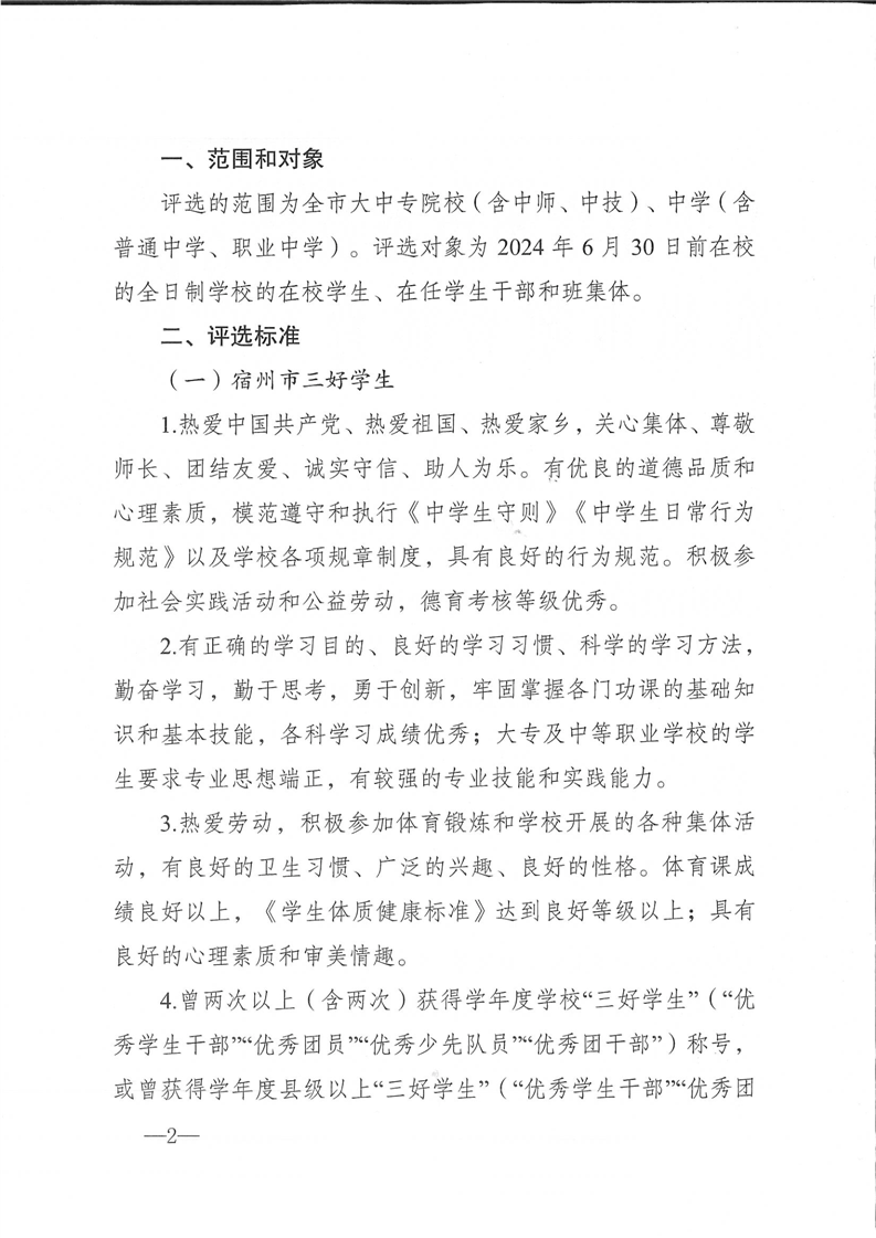 关于做好2023.2024学年度“宿州市三好学生”“宿州市优秀学生干部”和“宿州市先进班集体”评选工作的通知