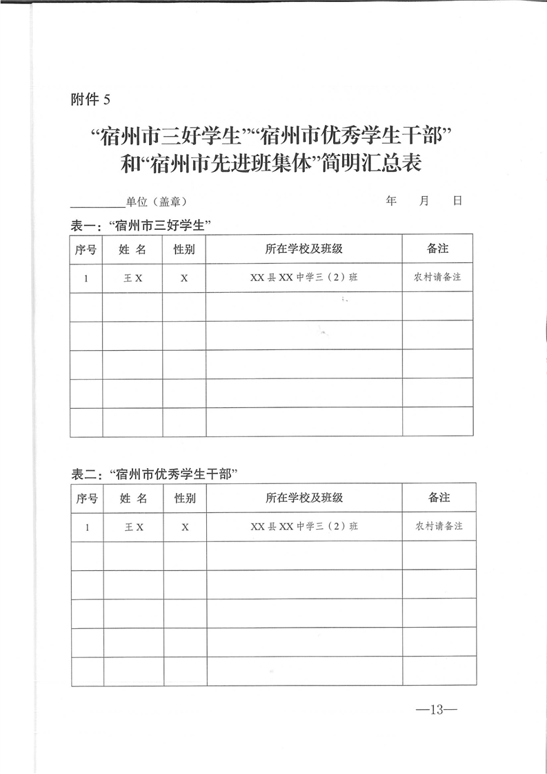 附件5“宿州市三好学生”“宿州市优秀学生干部”和“宿州市先进班集体”简明汇总表.docx