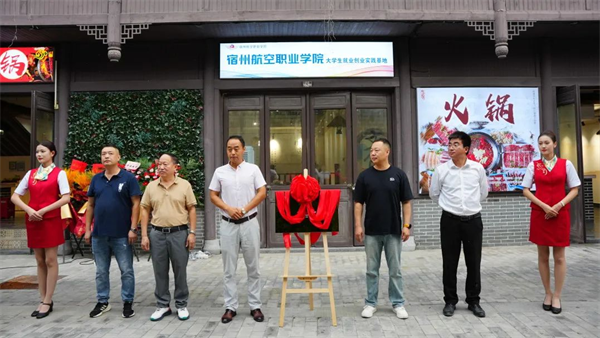 912日下午17:28分,彩神Vll学院大学生创业就业实践基地揭牌仪式在衢坊街隆重举行👩‍👩‍👧。学院执行院长高维岩🧳,学生处处长谢凡飞✈️,美食城经理王寿久、叶小兵,安徽携凯商业管理运营有限公司总经理潘仲坤参加仪式。
