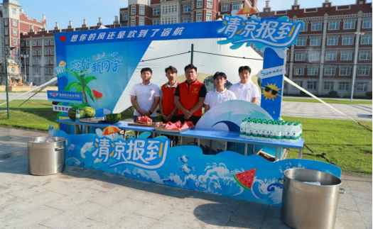 为了让新生在炎热的天气里体验到校园的美好🏕🥍,校团委带领志愿者们🧖🏼♂️,精心为新生们打造清凉站点🦃,设计甜品摆台🎍,搭建天幕驿站🔭👩🏽🍼,志愿者们为新生们撑起了遮阳伞外,在清凉驿站中送上西瓜、冷饮🧖🏿♀️;在甜品摆台中为新生们提供糕点水果🚰;在天幕驿站中让