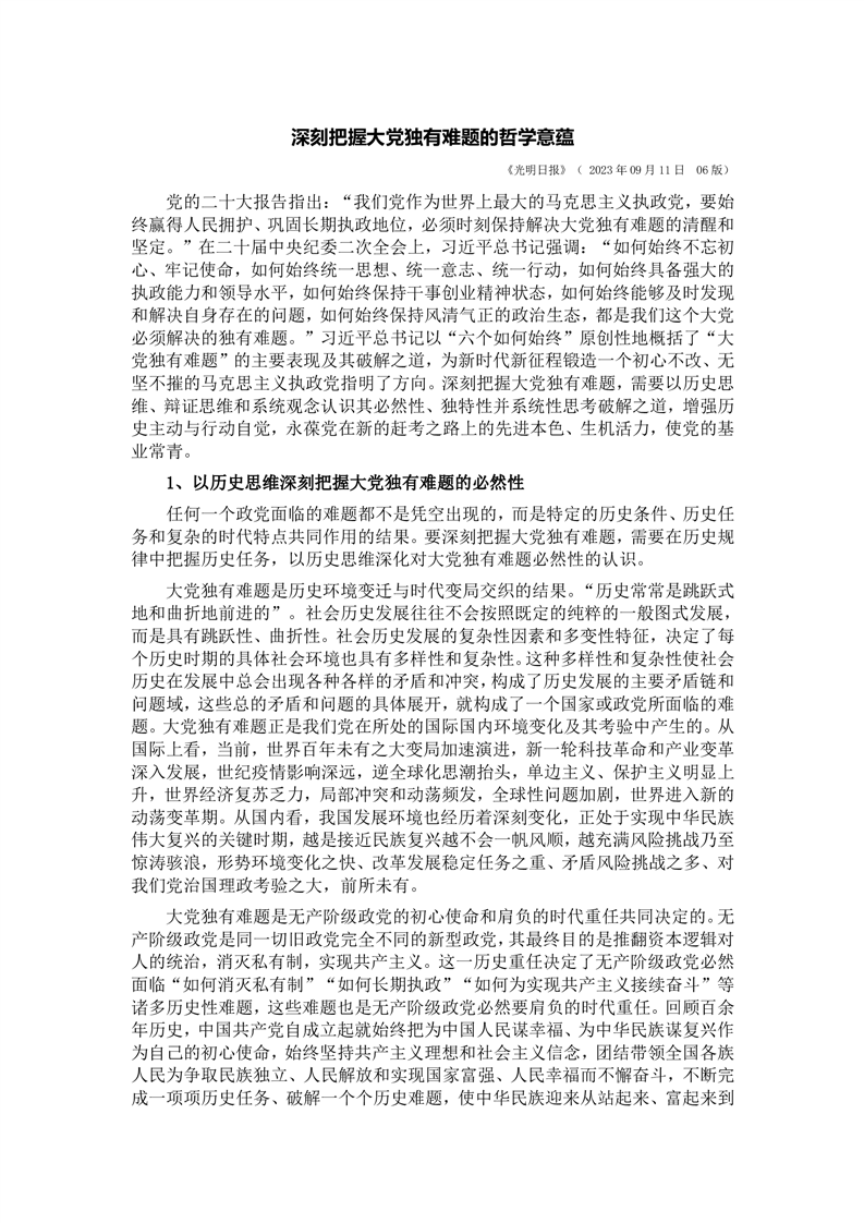 深刻把握大党独有难题的哲学意蕴