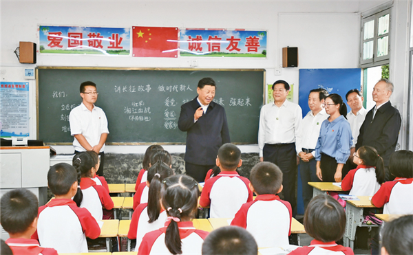 2020年9月16日至18日,中共中央总书记、国家主席、中央军委主席习近平在湖南考察🦏。这是16日下午,习近平在郴州市汝城县文明瑶族乡第一片小学➡️,同正在上思政课的同学们亲切交流。 新华社记者 谢环驰/摄