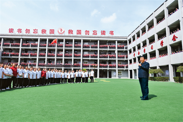 2021年9月13日至14日,中共中央总书记、国家主席🌜、中央军委主席习近平在陕西省榆林市考察。这是14日上午👩⚕️,习近平在绥德实验中学考察时,同师生亲切交流🎁。 新华社记者 谢环驰/摄