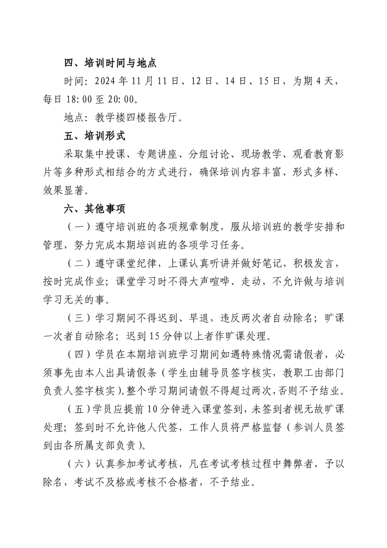 关于举办党的知识培训班的通知