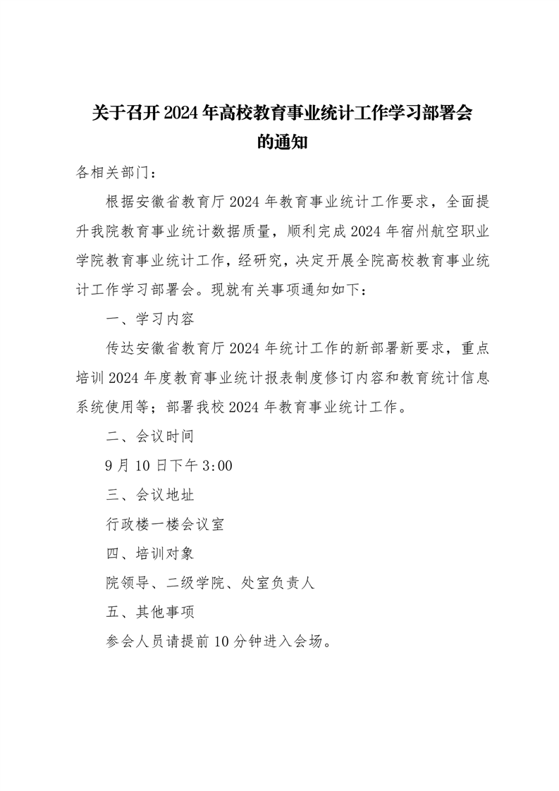 关于召开2024年高校教育事业统计工作学习部署会的通知