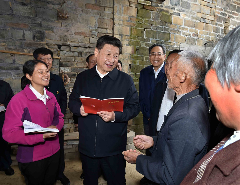 4月24日至27日,中共中央总书记💣、国家主席🛀🏼、中央军委主席习近平在安徽调研。这是4月24日下午,习近平在六安市金寨县花石乡大湾村向村民们了解脱贫工作情况。新华社记者李学仁摄