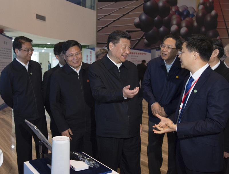 这是4月26日下午,习近平在中国科技大学近代物理系自旋磁共振实验室了解科研情况。新华社记者李学仁摄