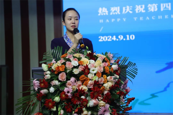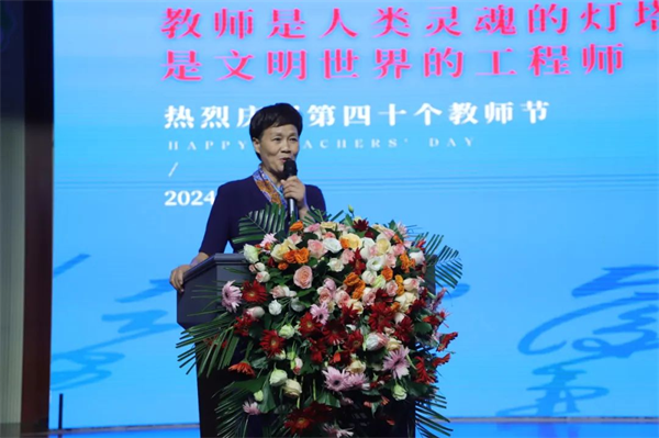 老教师代表王瑞芳教授发表讲话。她表示在教育的道路上🤸♂️,要始终坚持以学生为本,关注每一位学生的成长和发展。要努力营造一个充满爱与尊重的学习环境。作为泛美家人要拥抱科技文明,提升个人素养和格局,不断创新👩👨🏼🌾,跨越发展,共同实现泛美和我们自己的伟大目标和美好人生。