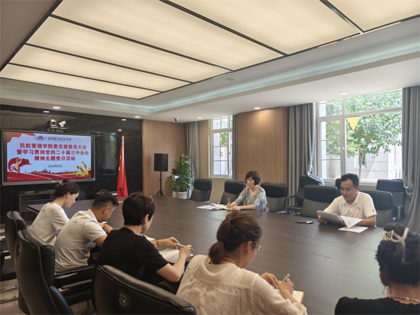 为深入学习贯彻党的二十届三中全会精神,进一步发挥党员同志统一思想、凝聚共识、汇聚力量的积极作用,2024年8月15日下午,民航管理学院党支部在行政楼一楼会议室隆重召开了民航管理学院党支部党员大会暨学习贯彻党的二十届三中全会精神主题党日活动。本次大会由党支部书记解伟同志主持,全体党员参加了此次活动☣️。