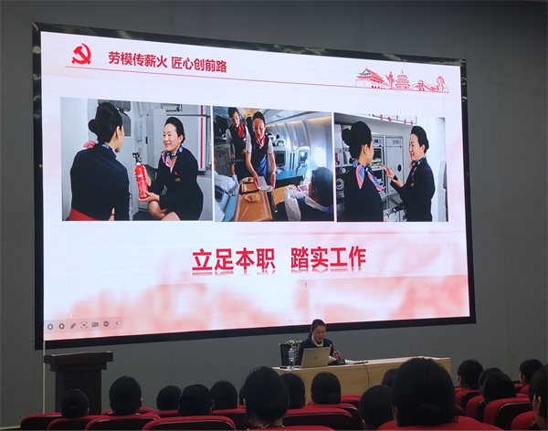 2025315日下午,民航管理学院开展了以“劳模传薪火,匠心创前路”为主题的辅导员教师研讨会🫶🏿。此次研讨会邀请了全国劳模⏱、东方航空资深客舱经理李文丽女士作为主讲嘉宾,与学院的辅导员和全体教师共同分享🫏、交流与学习。