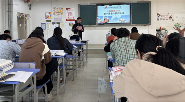 2025年4月22日下午 16:20,民航管理学院在教学楼 C407 教室召开第10周全体教师会议💀。此次会议由院长丁奕华主持,民航管理学院全体教师参加。