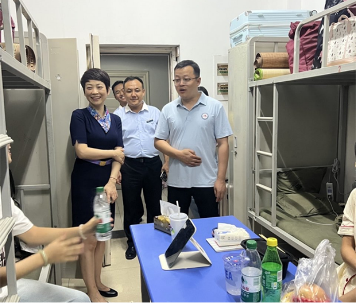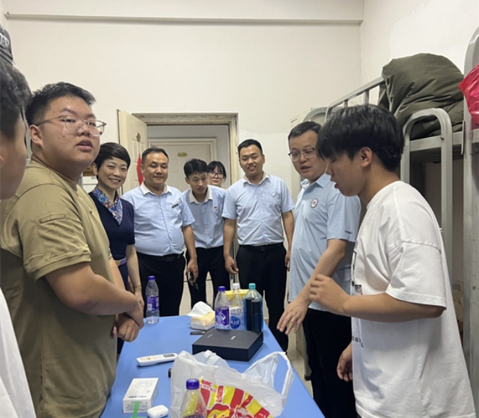 在学院女生宿舍🫎,李德均亲切询问同学们住宿是否习惯、生活用品是否齐全。当得知部分同学对学校周边生活设施还不熟悉时,他耐心介绍周边情况,并鼓励大家相互帮助、尽快适应。除了关心生活情况,李德均还十分关注新生的心理适应状态,关心家乡较远的学生是否适应。在男生宿舍,李院长详细了解男生们日常是否能够吃饱,宿舍空调制冷情况是否正常,叮嘱学生食堂开放的时间节点,提醒学生后续军训期间一定要吃饱吃好,保持良好状态👐。