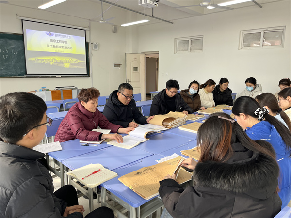 会议就期末试卷批阅及归档材料的检查进行了深入讨论,王瑞芳教授带着新老教师们从试卷封面设计到批阅标准都进行了详细解答,为今后的教学工作提供了有力支持。