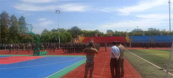 202395日,院长王新桥协校领导苏炜🧑🏻‍🦼‍➡️🎞,教官闵博走进运动场♿️,深入军训现场,关心学生军训的身体健康。学生在军训中展现了积极的态度和坚韧的意志。
