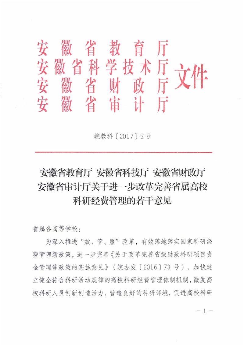 安徽省教育厅 安徽省科技厅 安徽省财政厅 安徽省审计厅关于进一步改革完善省属高校科研经费管理的若干意见