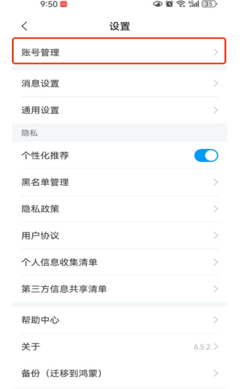 2👟、进入“设置”后,选择“账号管理”