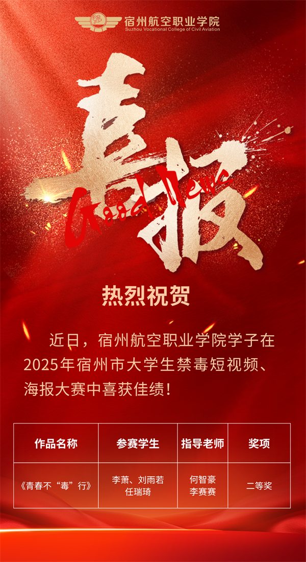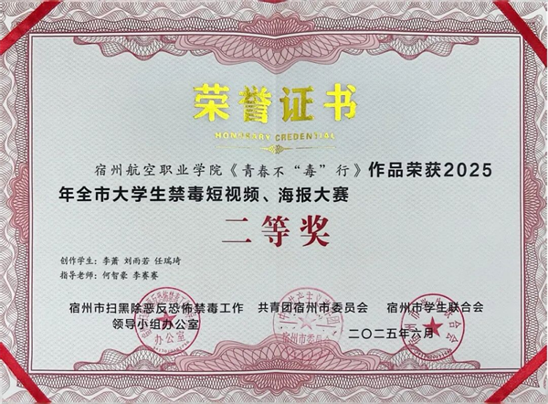 青春不“毒”行!宿州航院禁毒作品荣获全市二等奖